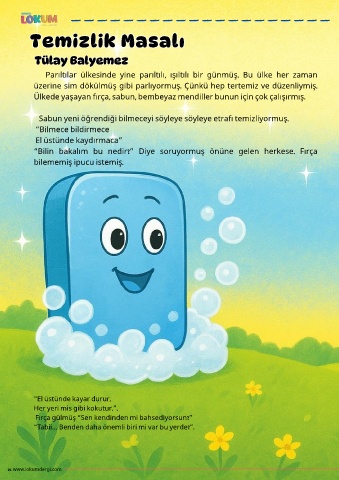 Sabun yeni öğrendiği bilmeceyi söyleye söyleye etrafı temizliyormuş.
