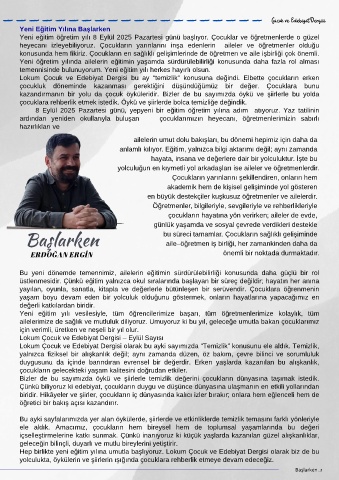 Hep birlikte yeni eğitim yılına umutla başlıyoruz. Lokum Çocuk ve Edebiyat Dergisi olarak biz de bu