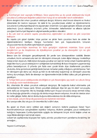 4. Cumhuriyet özel sayısıyla birlikteyiz. Sizce yayıncılıkta ya da çocuk edebiyatında küçük