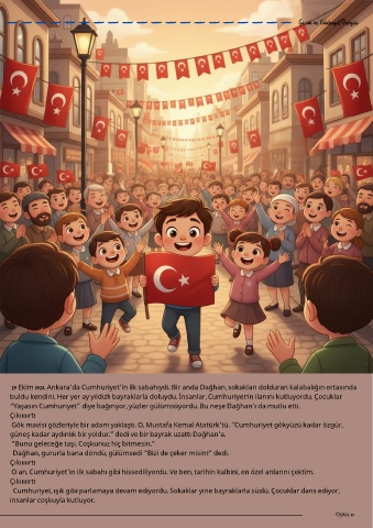 buldu kendini. Her yer ay yıldızlı bayraklarla doluydu. İnsanlar, Cumhuriyet'in ilanını kutluyordu. Çocuklar
